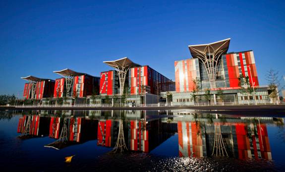 北京國際花卉物流港項(xiàng)目總建筑面積近17萬平方米,包括展館、物流中心、交易中心三個(gè)單體工程。1#、2#、3#展館和物流中心屋蓋由36柄巨型鋼結(jié)構(gòu)與膜結(jié)構(gòu)“花傘”構(gòu)成,交易中心為巨型楓葉狀屋蓋上覆PTFE膜材。該項(xiàng)目為“國家優(yōu)質(zhì)工程 獎(jiǎng)”獲獎(jiǎng)項(xiàng)目,曾作為2009年第七屆中國花卉博覽會(huì)的主會(huì)場(chǎng),現(xiàn)已改建為國門1號(hào)全球家居總部基地,改建后總建筑面積為30萬平方米。