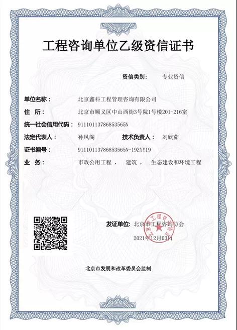 順義建投下屬鑫科公司取得生態(tài)建設(shè)和環(huán)境工程專業(yè)乙級資信